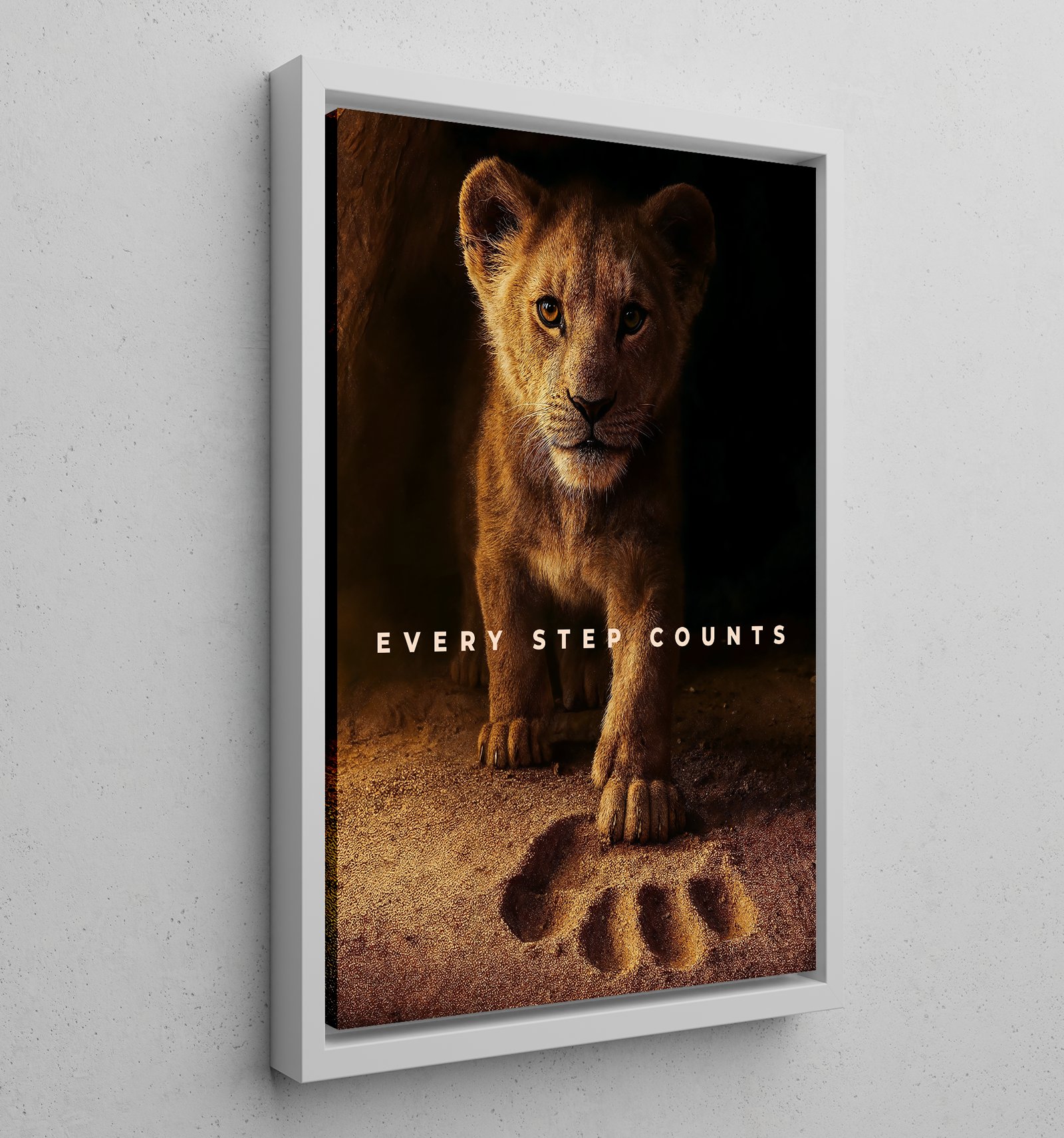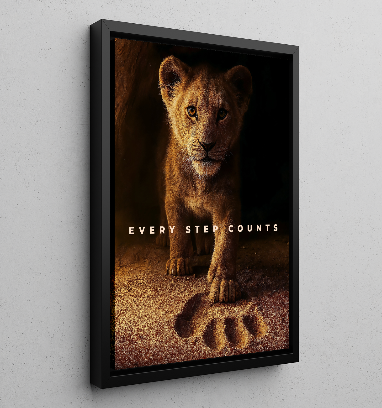 Powerful, inspiring, and visually striking — Every Step Counts is a reminder that greatness isn’t built overnight. Featuring a young lion standing confidently over a single paw print, this artwork symbolizes growth, courage, and the importance of every move we make toward our future.