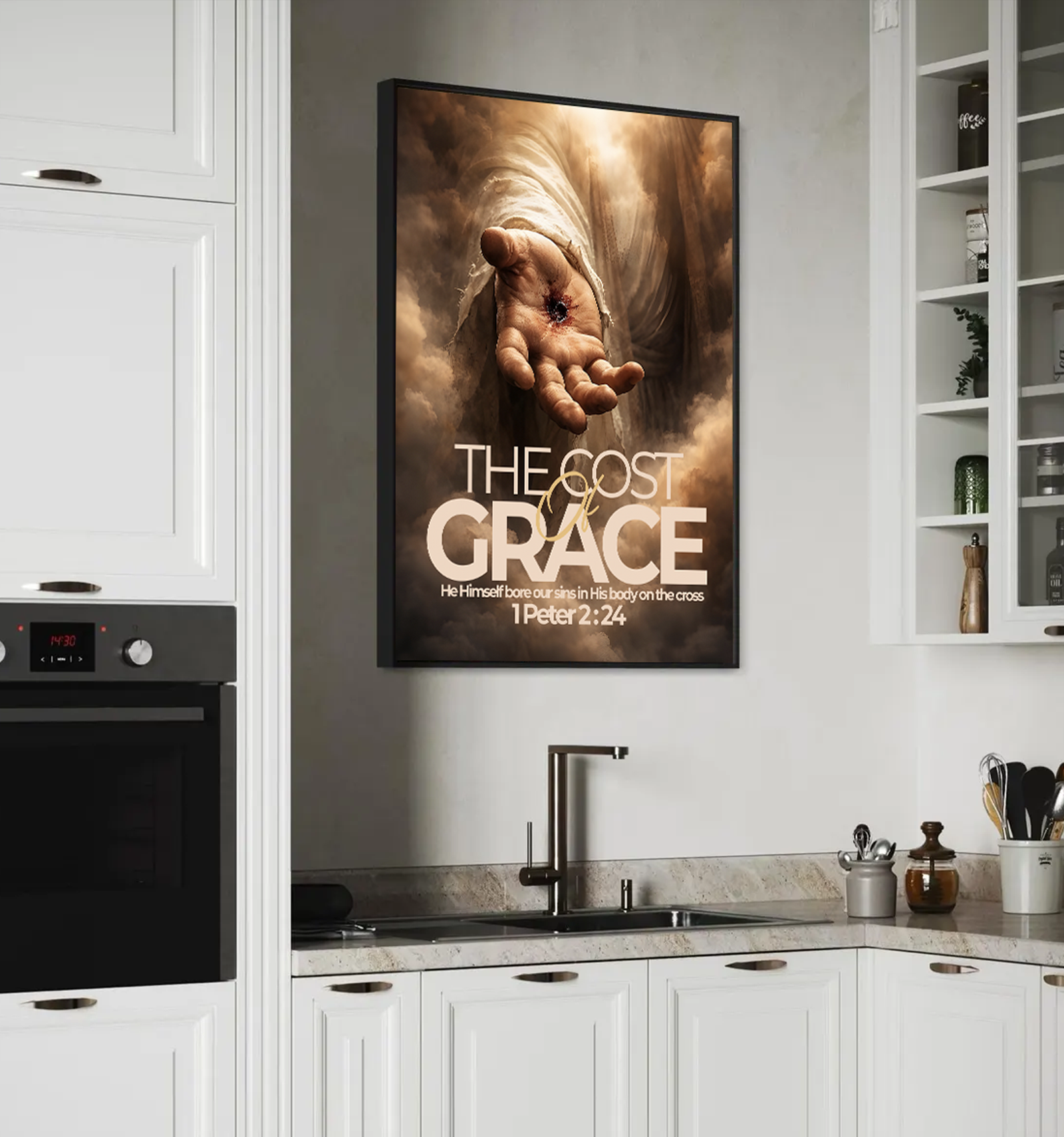 Bring The Cost of Grace into your space and let it stand as a daily reminder that grace was freely given, but dearly bought.