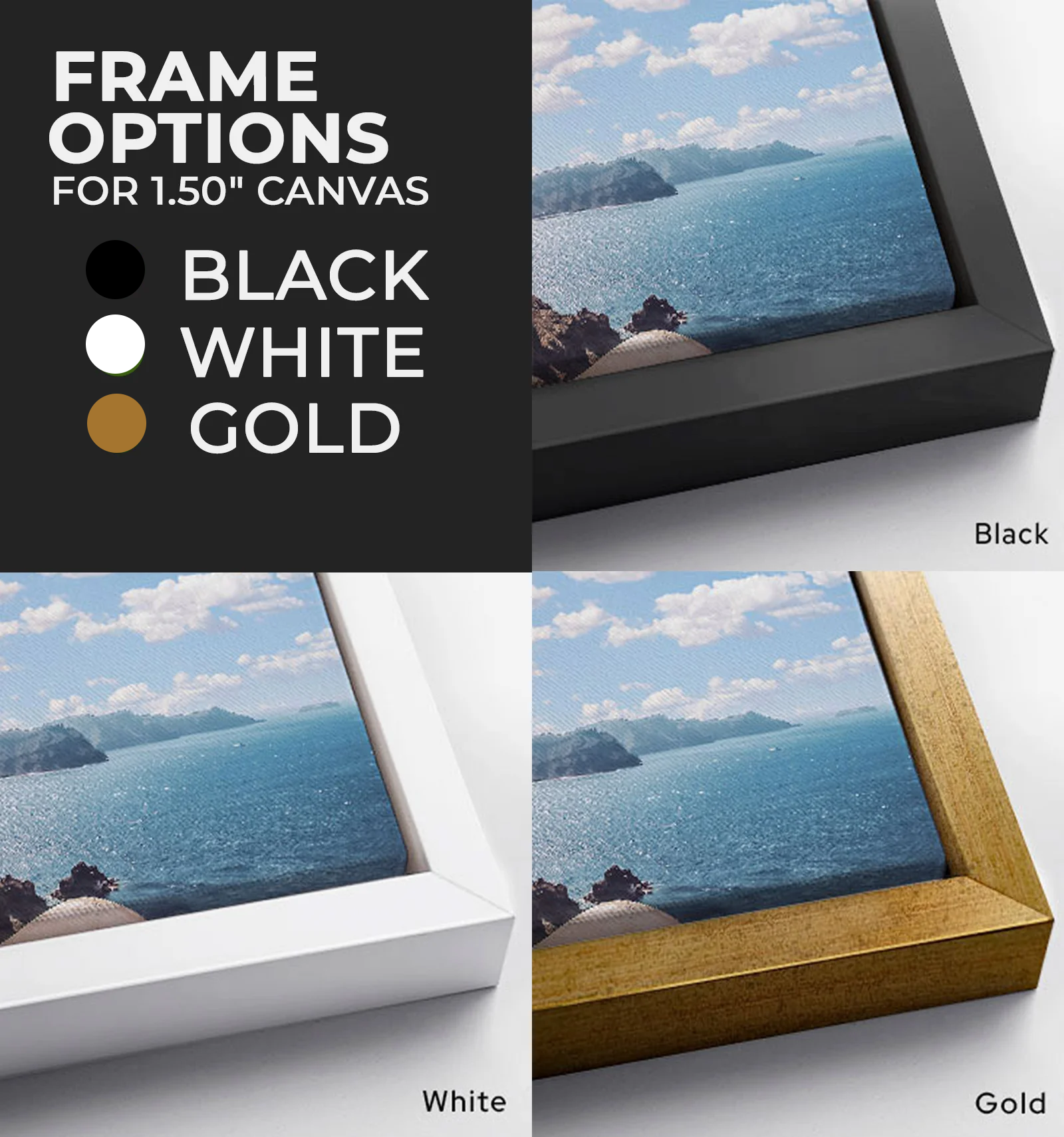 Printed on premium gallery-wrapped canvas and available in 24"x18", 32"x24", 40"x30", and 48"x36", this piece brings a commanding presence to offices, game rooms, home libraries, executive spaces, studios, and modern interiors. For an elevated finish, choose an optional floating frame in Black, White, or Gold.