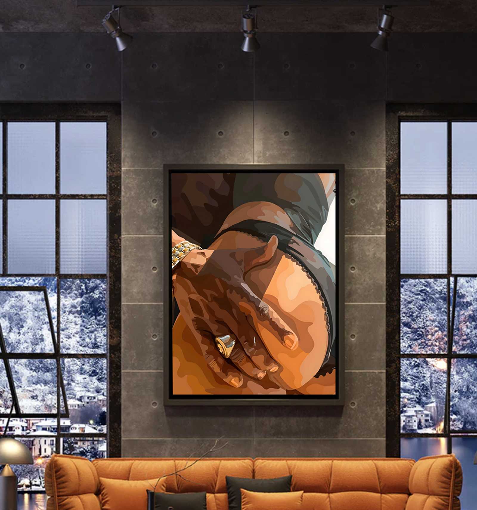 Printed on premium gallery-wrapped canvas and available in 24"x18", 32"x24", 40"x30", and 48"x36", Embrace of Trust adds warmth, sophistication, and emotional depth to any living room, studio, or intimate space.